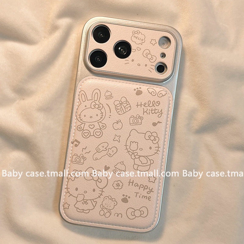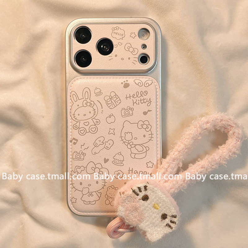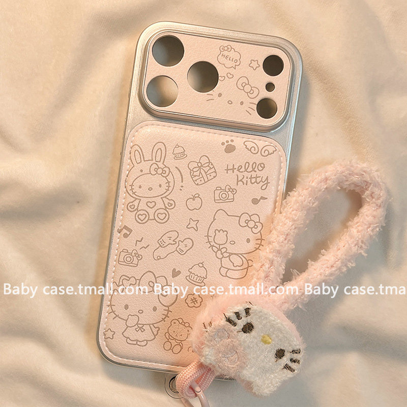少女心粉色皮质可爱凯蒂猫适用苹果手机壳