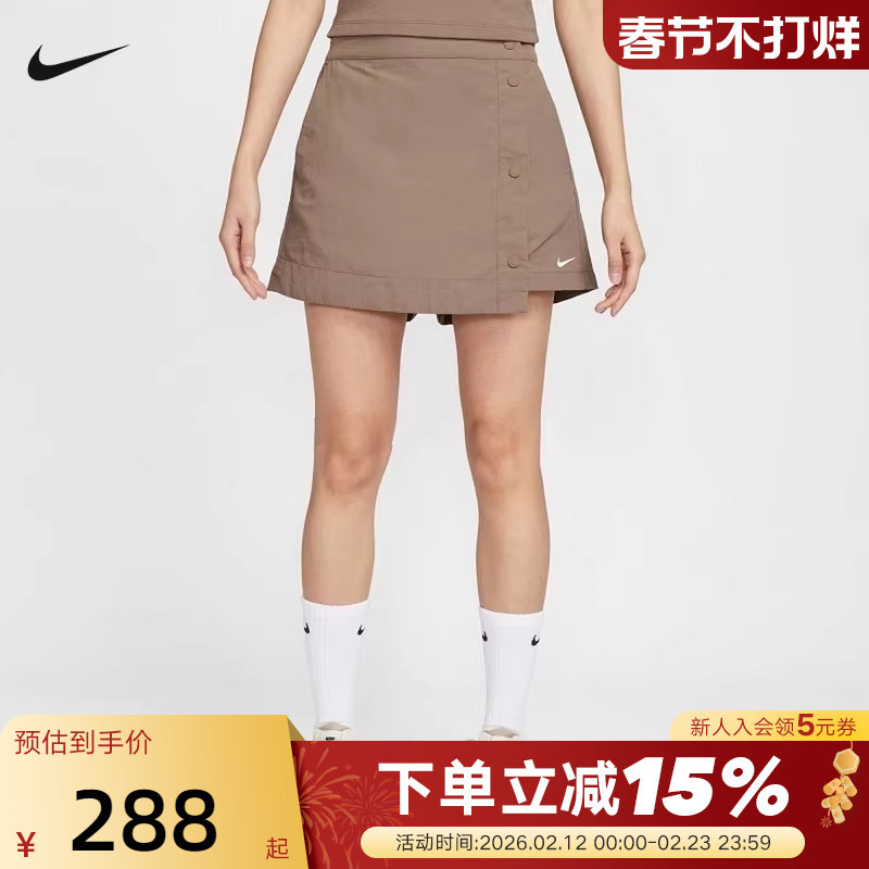 NIKE耐克梭织短裤女夏季新款运动休闲刺绣小标排扣裙裤HM6980-214