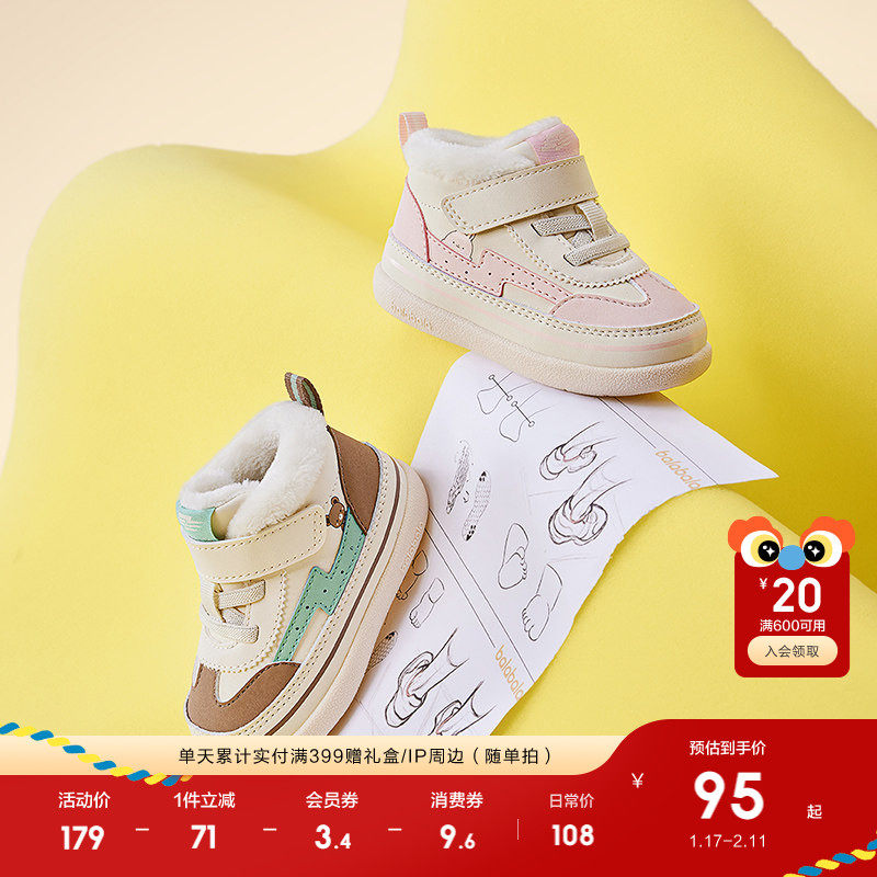 巴拉巴拉儿童学步鞋婴儿鞋子男宝女宝板鞋加绒厚秋冬童鞋潮流透气