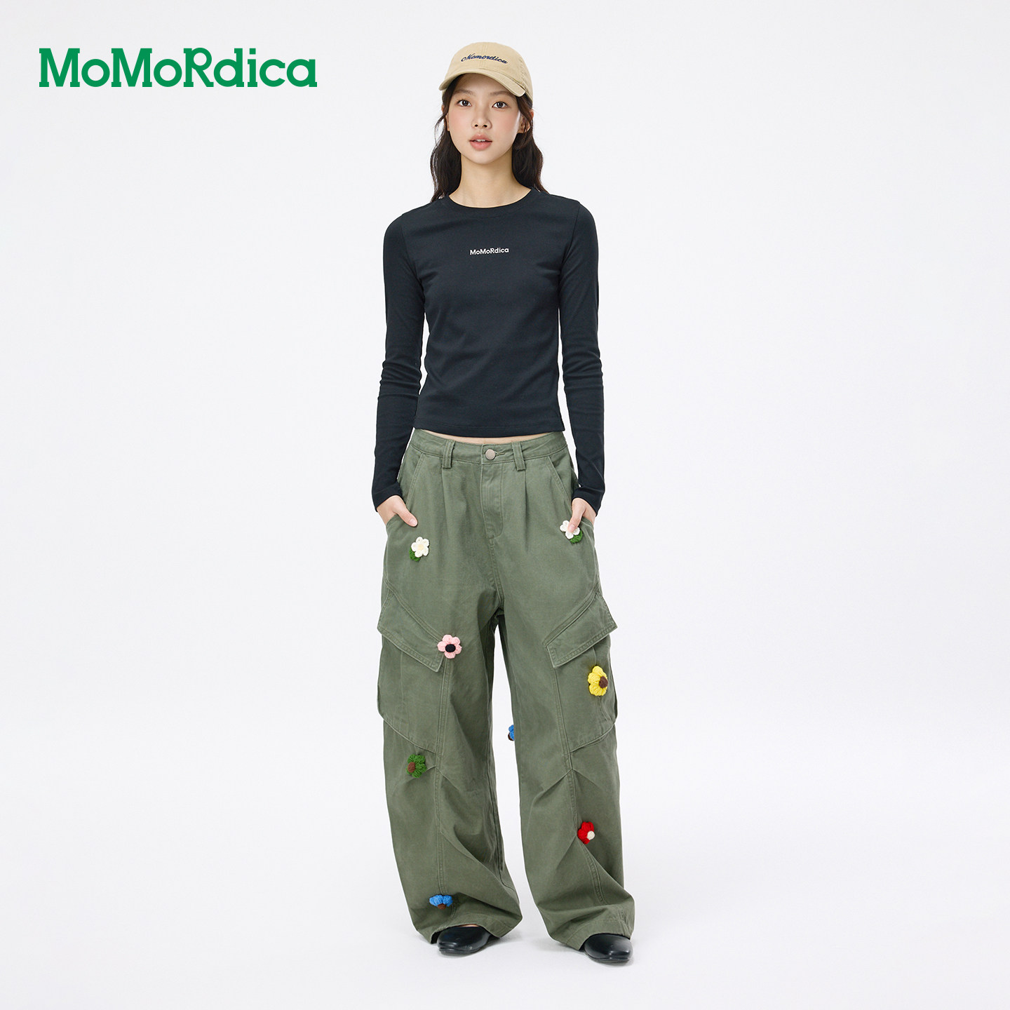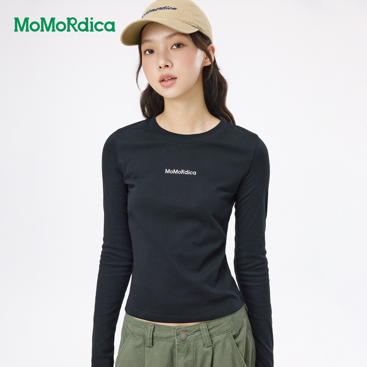 Momordica圆领长袖T恤修身显瘦弹性舒适