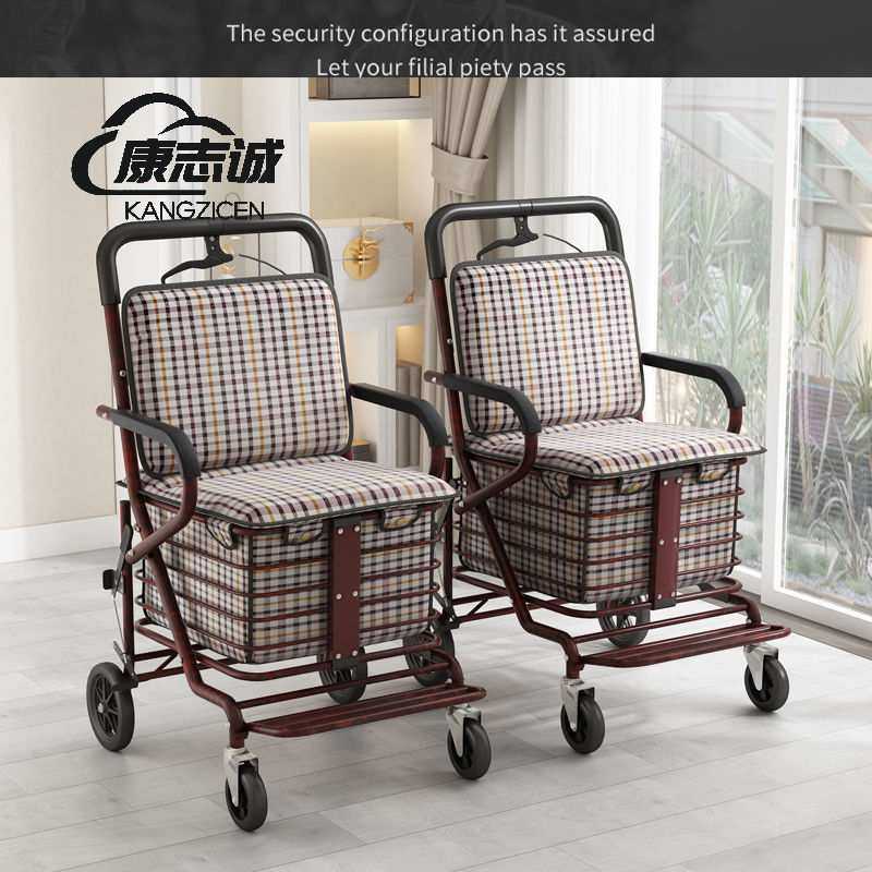 可坐可推四轮买菜老人手推车座椅折叠助步购物车老年代步车