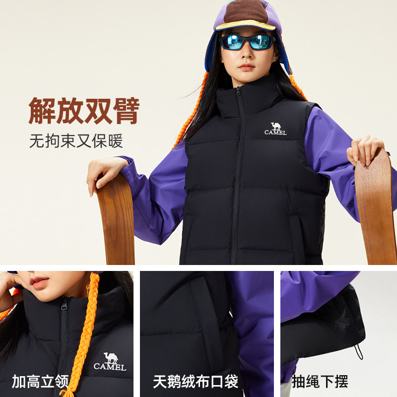 骆驼女装羽绒服马甲2025秋冬白色轻薄短款外穿保暖加厚背心外套女