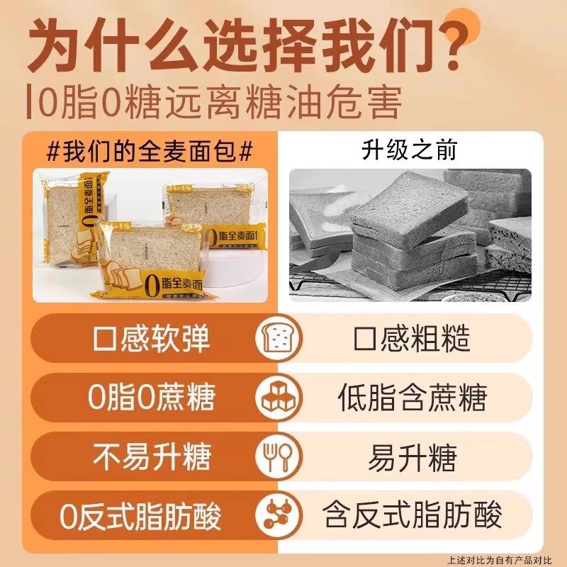 全麦面包0脂无蔗糖减专用肥早餐纯黑麦丁代餐官方旗舰店控糖糖友