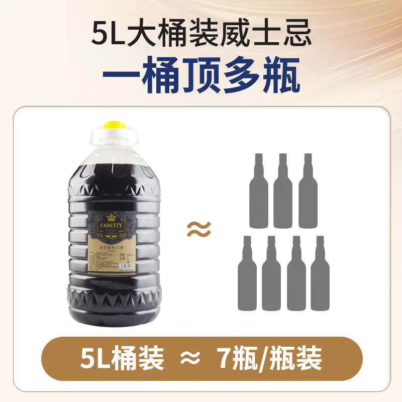 5L桶装干红葡萄酒露酒果味酒威士忌白兰地调酒基酒烈酒伏特加洋酒