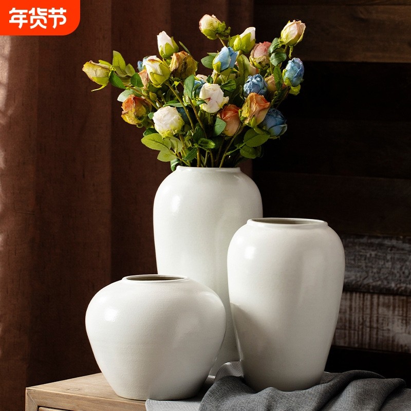 景德镇纯白色复古现代家居装饰陶瓷摆件石榴花瓶玄关电视柜客厅