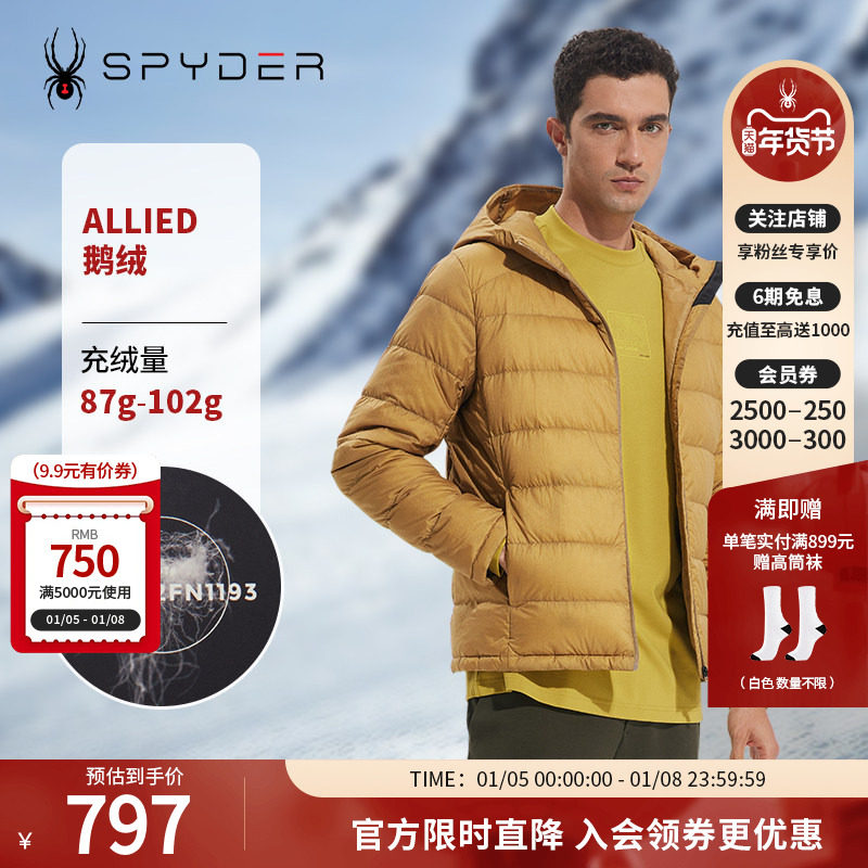 SPYDER新品男子TRAINING秋冬羽绒服户外保暖连帽防风外套23MR205M
