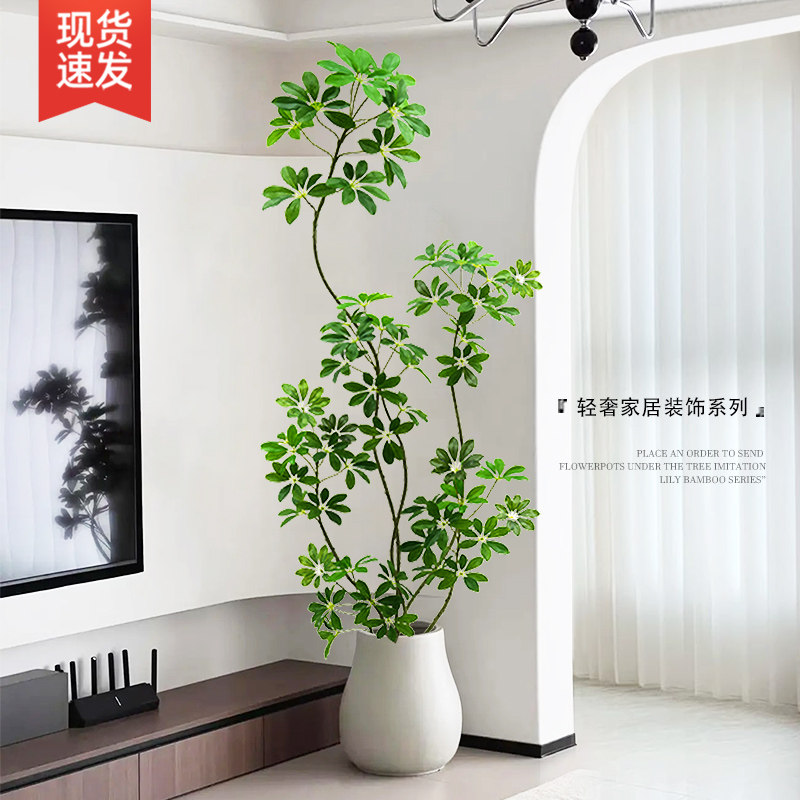 仿真绿植鸭脚木高端轻奢室内客厅电视柜落地大型植物装饰摆件假树