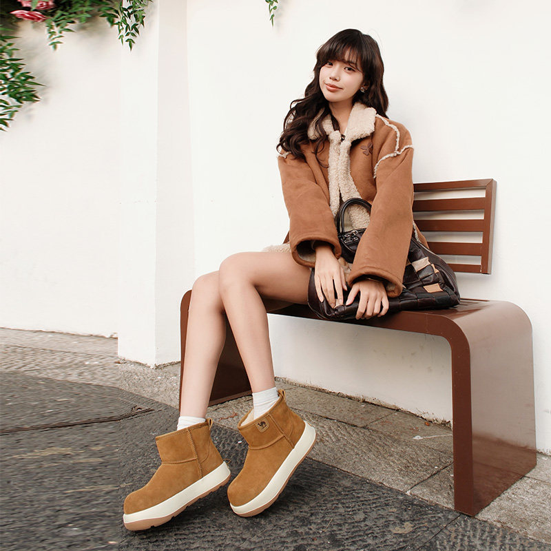 Chio2nd南风 雪地靴棉鞋2024新款冬季女士厚底加绒皮毛一体鞋子