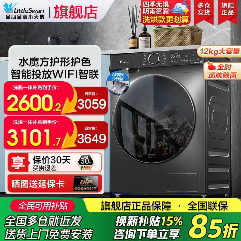 小天鹅水魔方滚筒洗衣机大容量12/10公斤家用全自动洗烘一体官方
