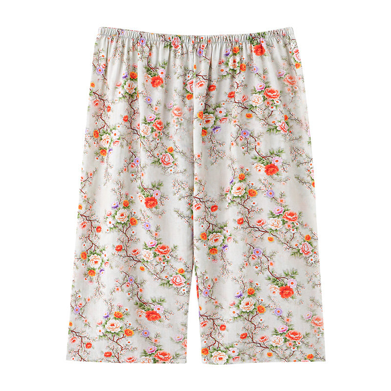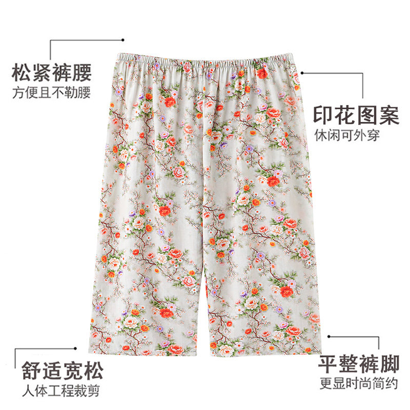 女式薄款夏裤休闲可外穿松紧弹力腰带七分裤人造棉棉绸睡裤家居