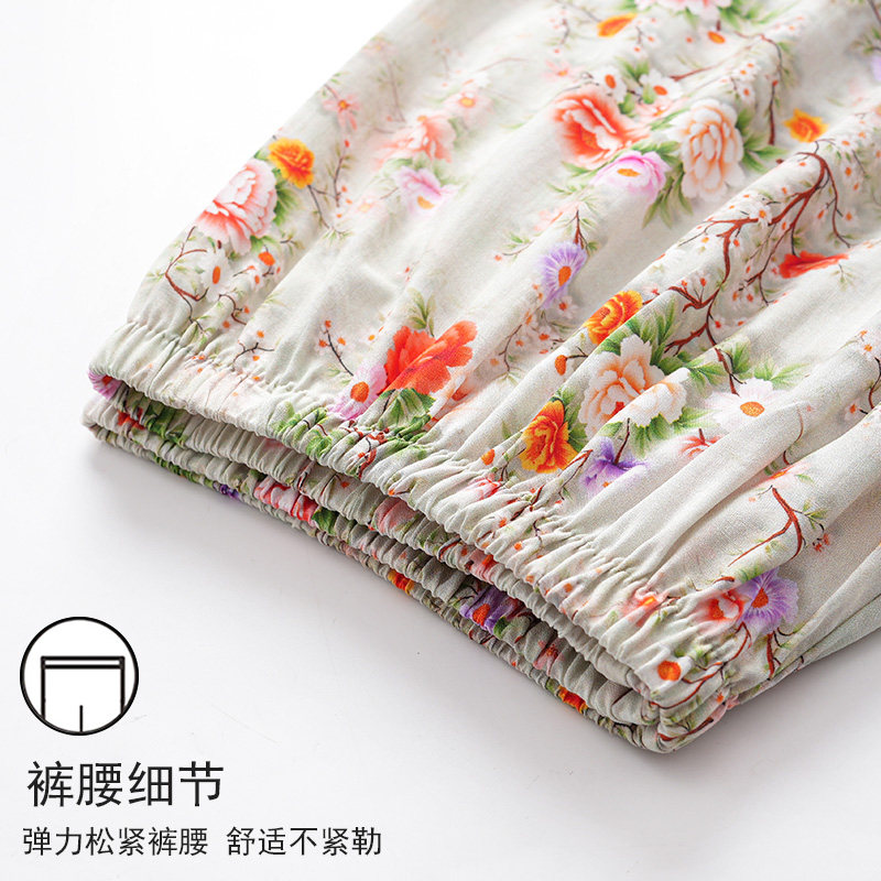大码棉绸睡裤女夏人造棉薄款绵绸灯笼裤可外穿防蚊裤度假沙滩长裤