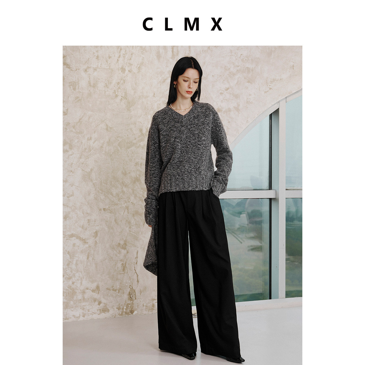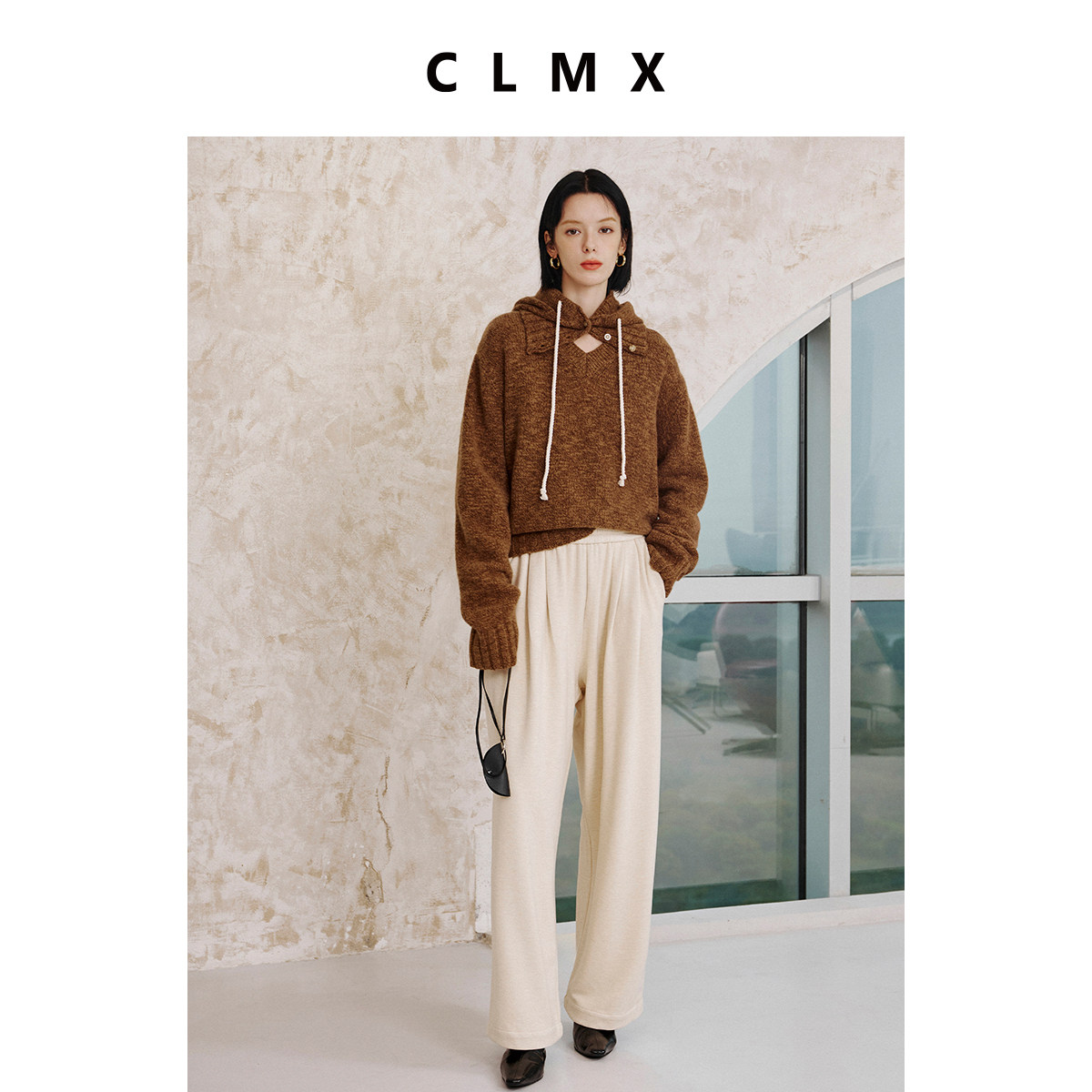 CLMX经典V领廓形毛衣+多穿抽绳帽 混色纯羊毛纱针织衫/叠搭针织帽