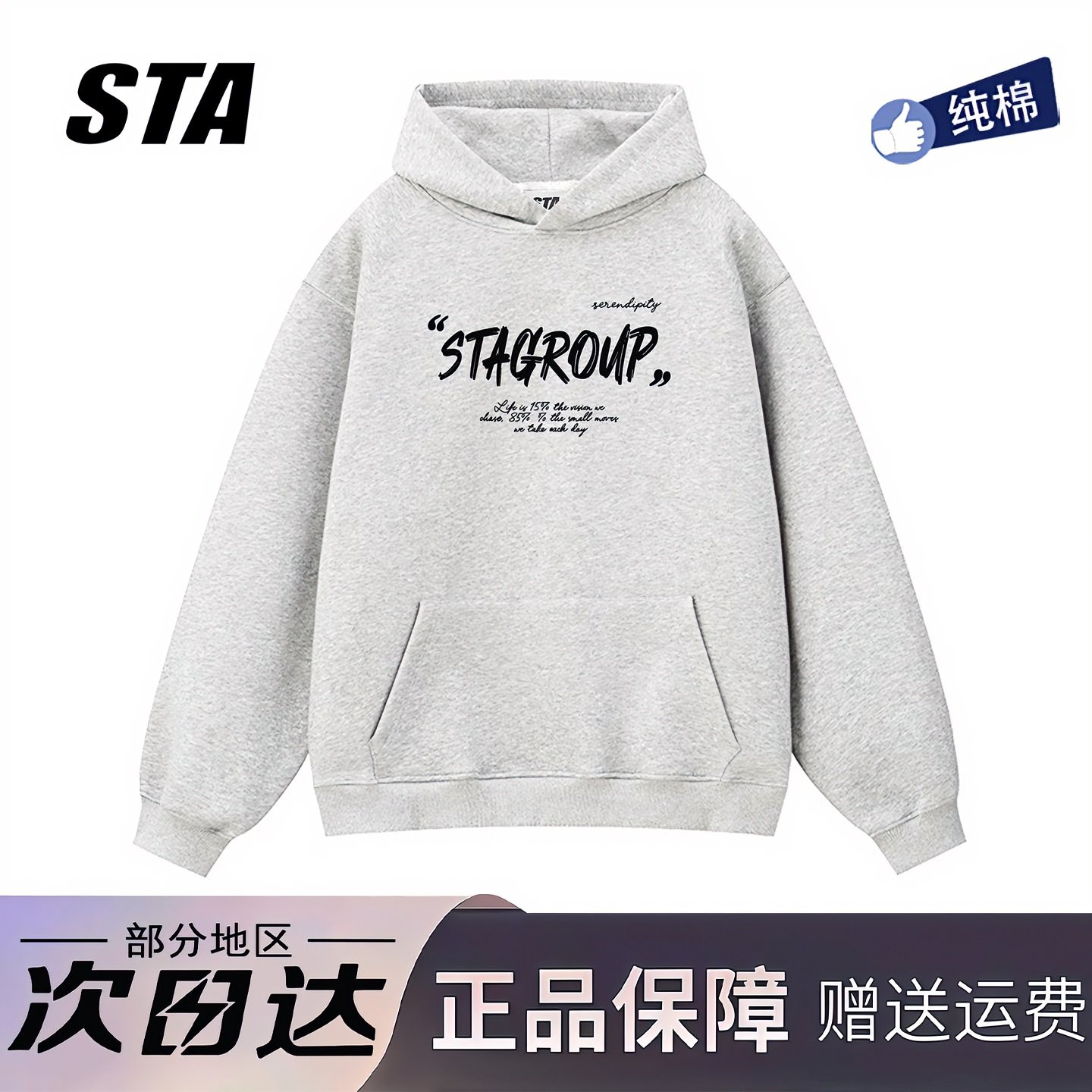 STA旗舰店基础小字母印花连帽卫衣男女美式潮牌重磅纯棉灰色外套