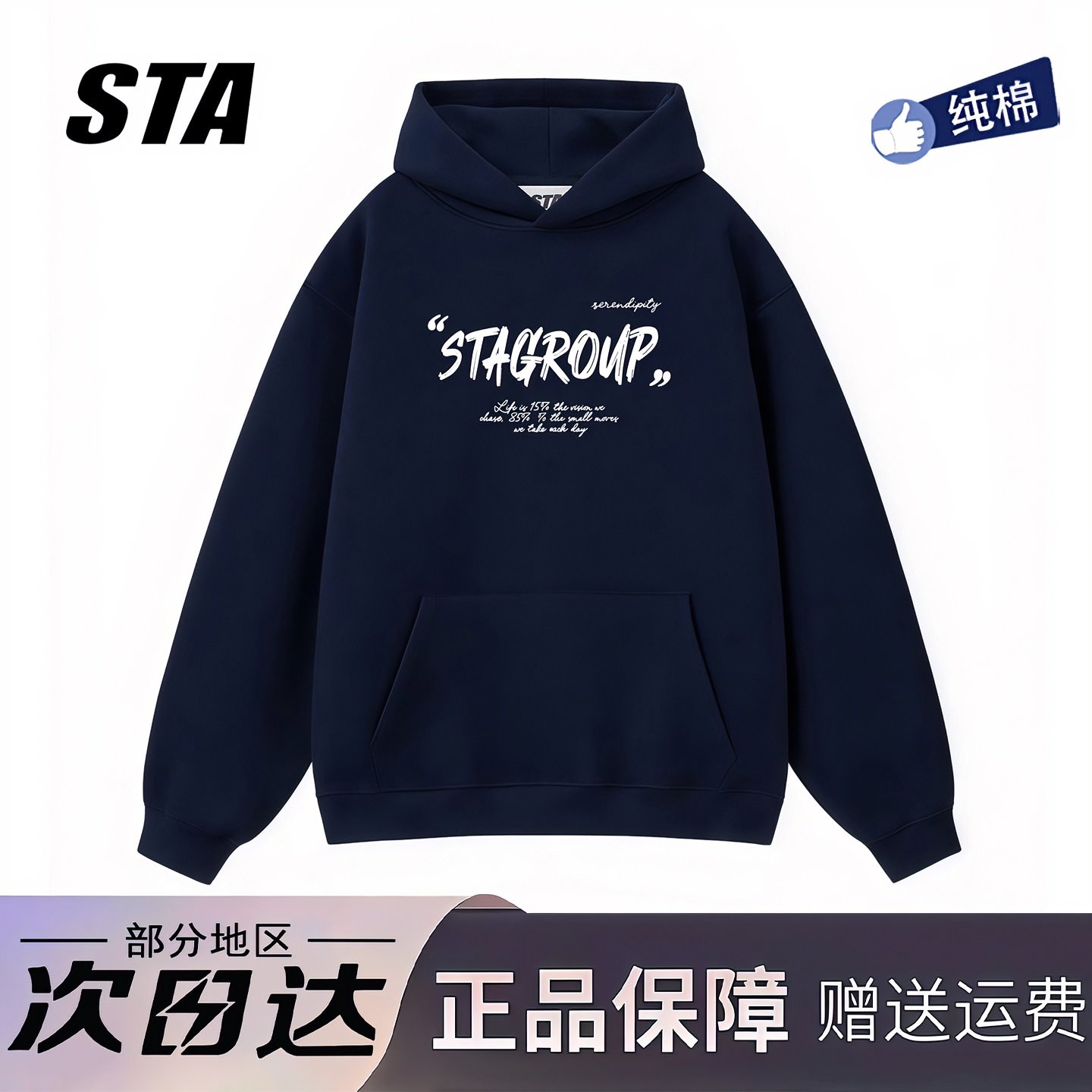 STA旗舰店美式潮牌字母印花连帽卫衣男女秋冬季纯棉加绒黑色外套