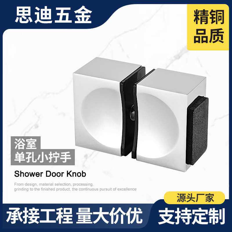 淋浴房玻璃门全铜实心单孔小拉手推拉门单双边小拧手工程 五金