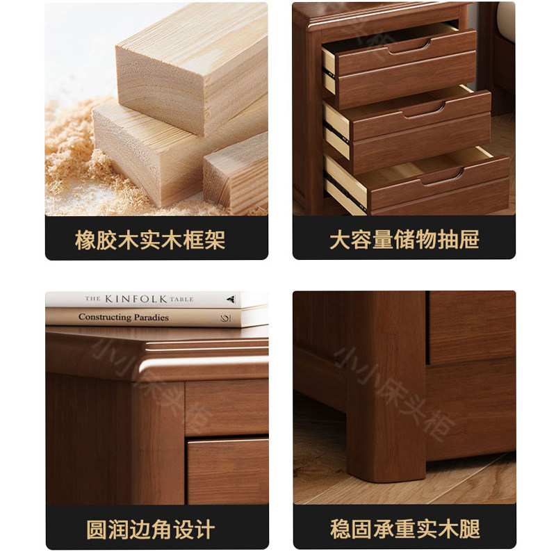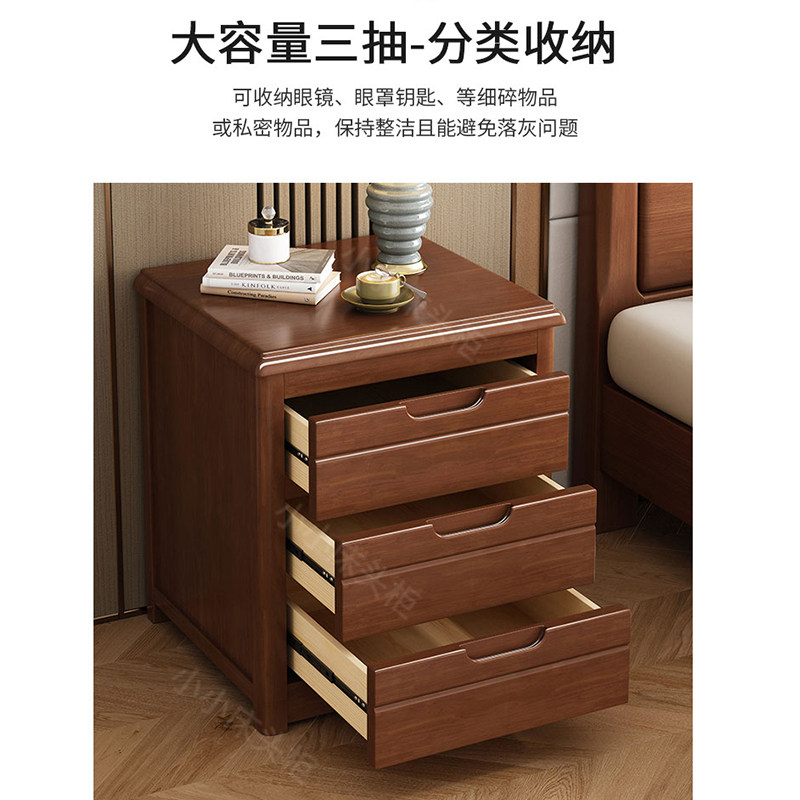 【免安装】三抽屉实木床头柜中式复古卧室带锁简约现代斗柜床边柜