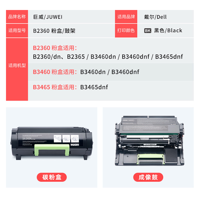适用戴尔B2360粉盒DELL B2360dn粉盒B3460dn/dnf B3465dn打印机碳粉盒B3460dnf硒鼓墨盒碳粉B2365成像鼓 鼓架