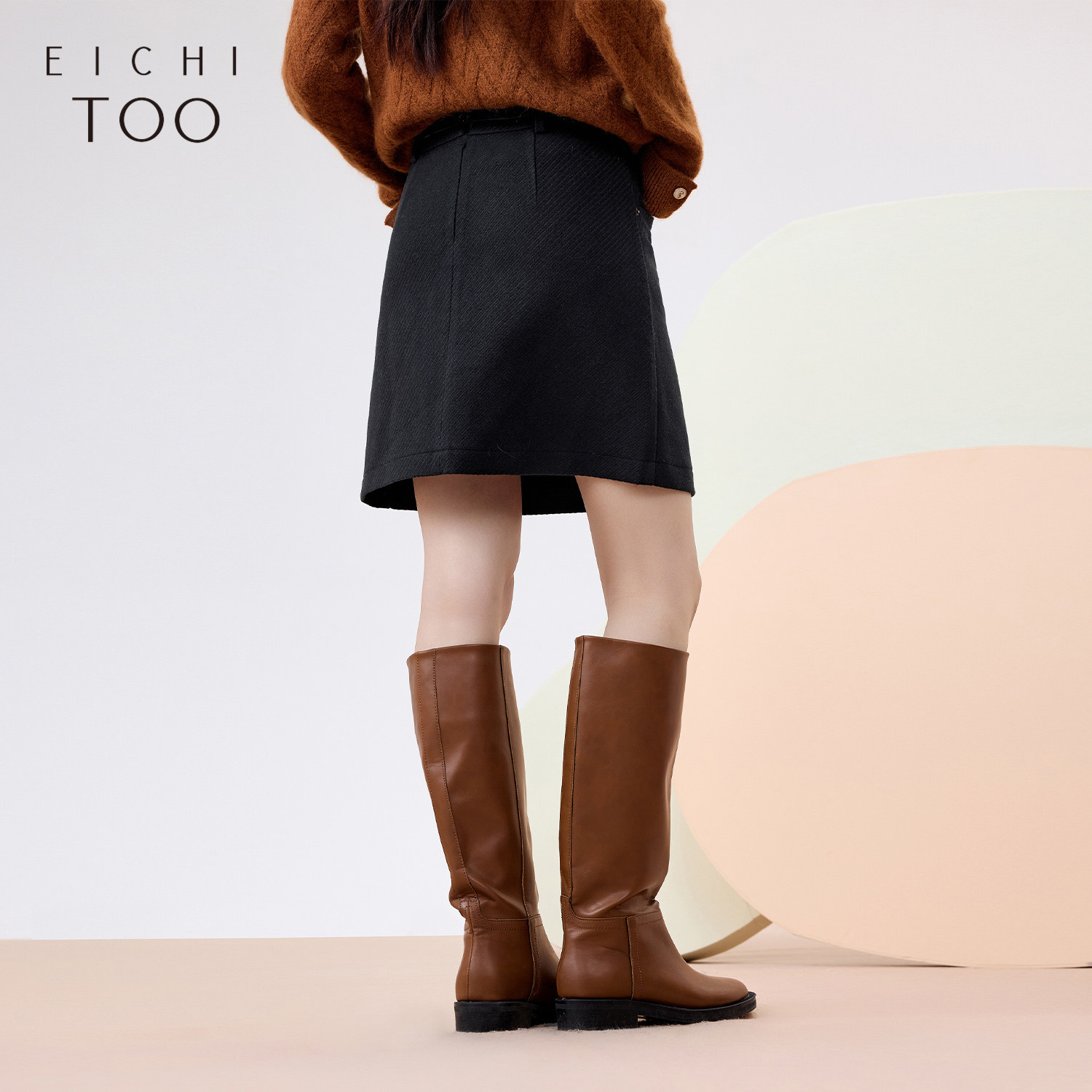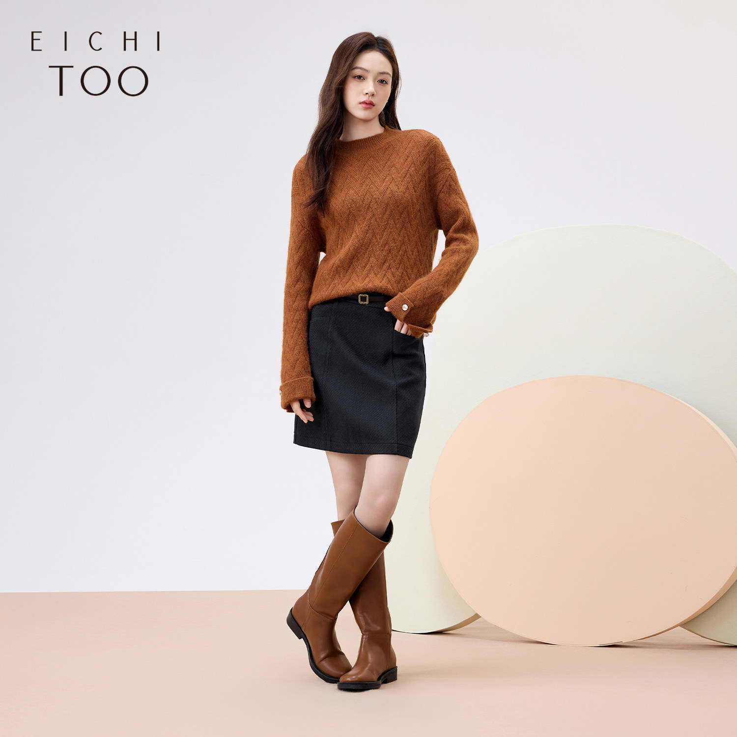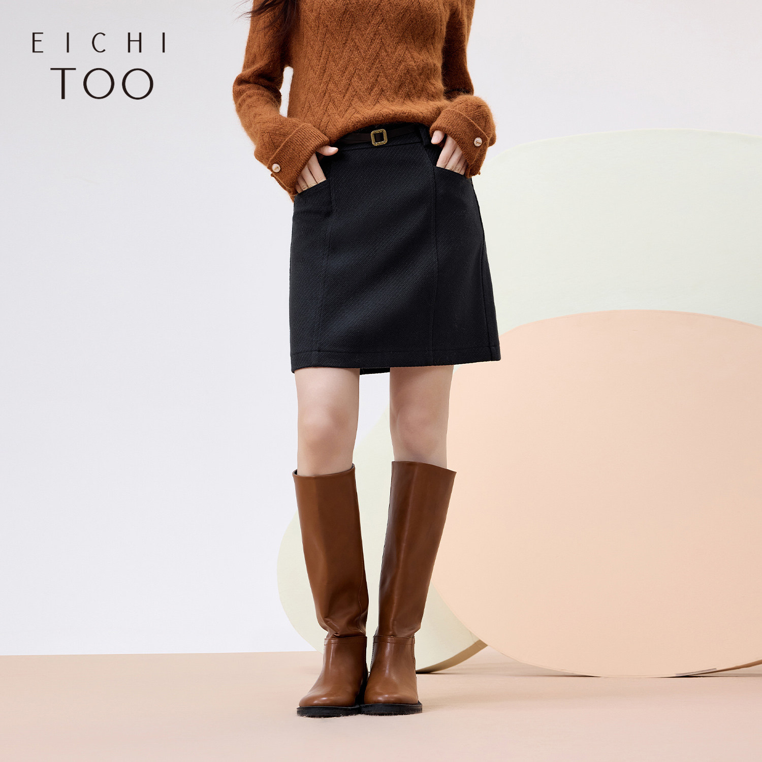 爱居兔高级感裙子女冬季新款时尚通勤黑色半身裙