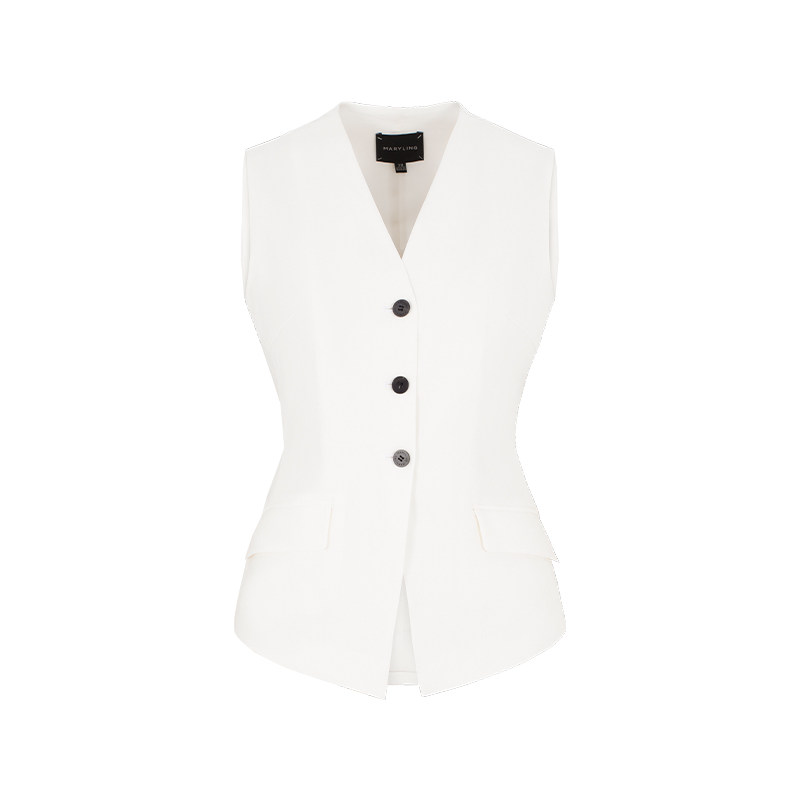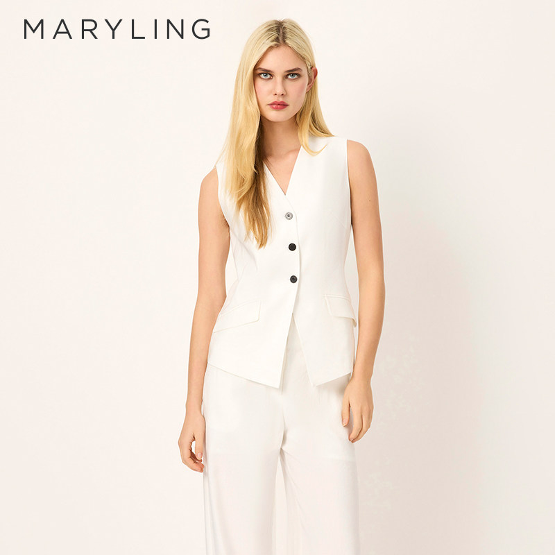 MARYLING玛俪琳2025初夏新品白色纯色V领单排扣马甲A1FCW28250