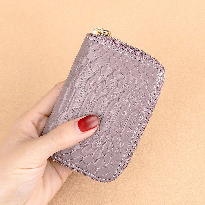 卡包女式多卡位大容量欧美鳄鱼真皮质感拉链风琴信用卡片零钱包