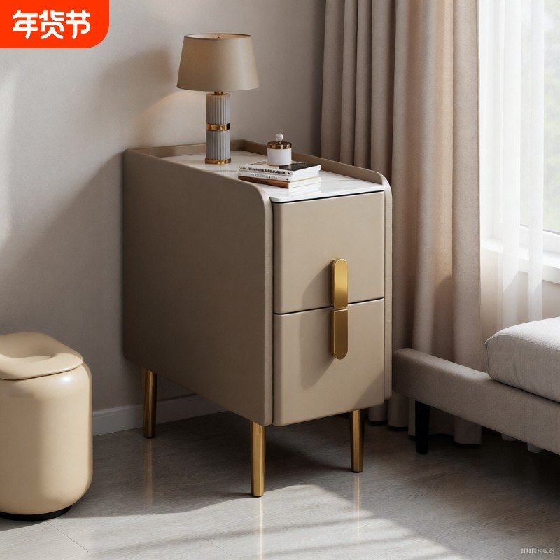 实木床头柜现代简约20cm储物柜小型收纳柜轻奢岩板超窄床边柜移动
