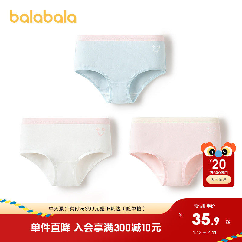 巴拉巴拉儿童内裤棉a类女童三角短裤大童男宝宝平角三条装五条装