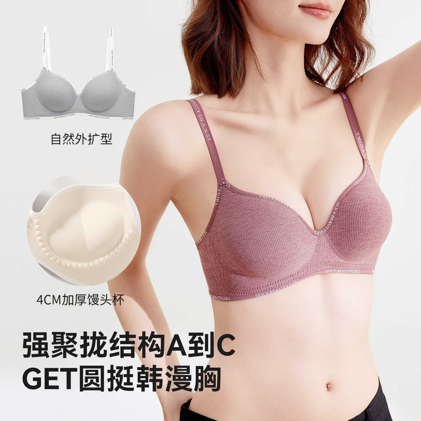 猫人内衣女小胸显大聚拢收副乳防下垂无痕无钢圈软支撑上托文胸罩