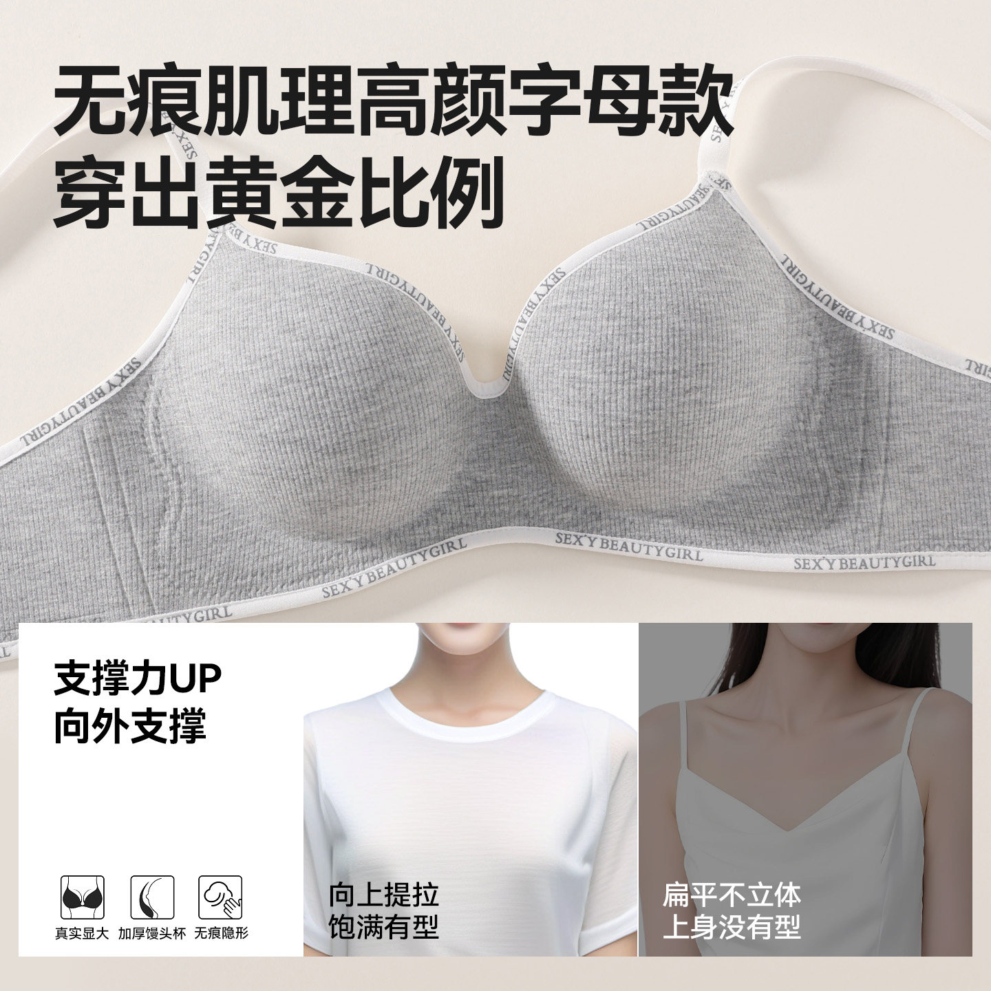 小胸显大聚拢收副乳防下垂无痕无钢圈软支撑