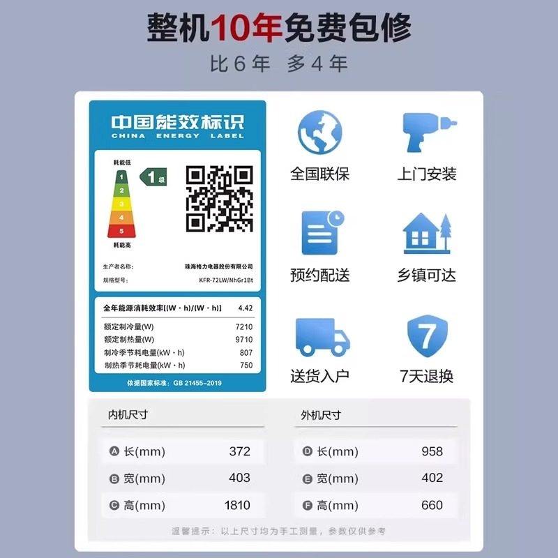 海尔空调1.5匹家用一级能效变频冷暖卧室壁挂式挂机超省电旗舰店