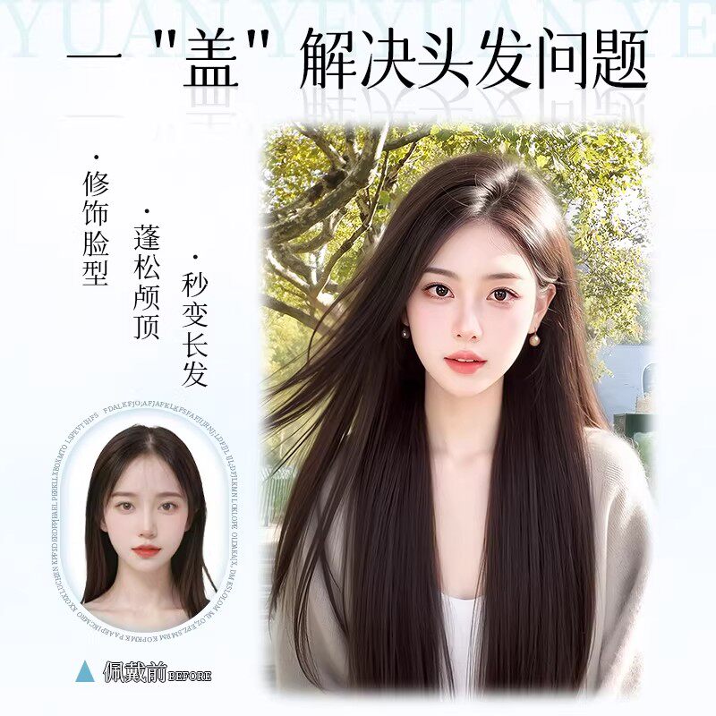 假发女长发升级不用戴发网超大头皮手织蕾丝补发块隐形无痕假发片
