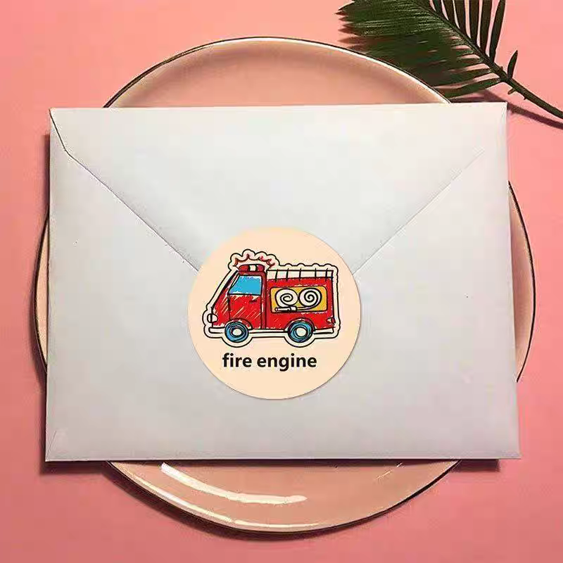 儿童卡通玩具汽车卡车消防车贴纸鼓励奖励游戏学习英文烘培封口贴