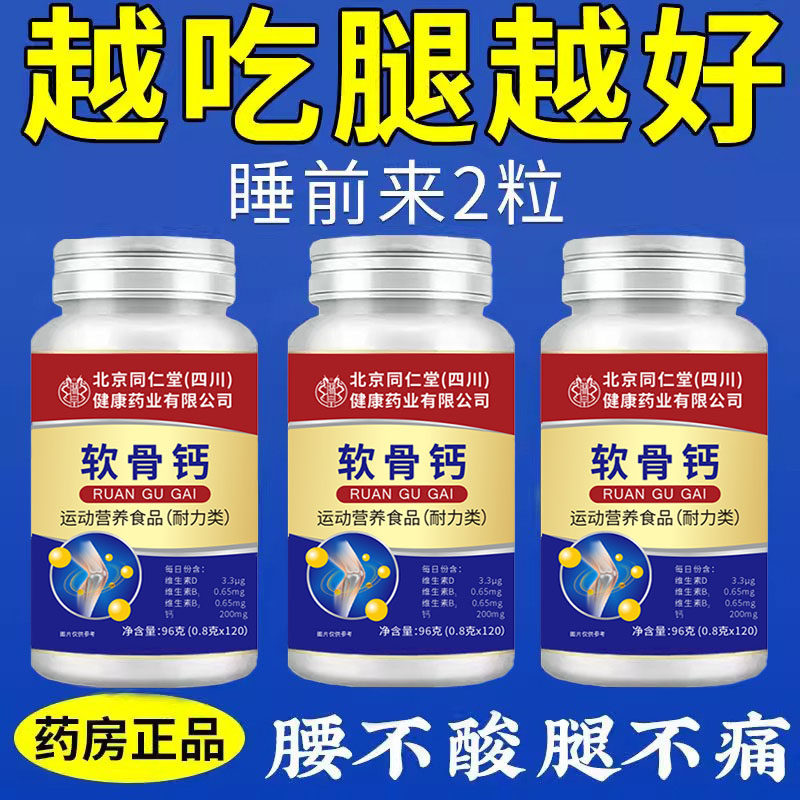 北京同仁堂朕皇软骨钙片中老年人腿抽筋腰腿疼骨质疏松缓解痛关节