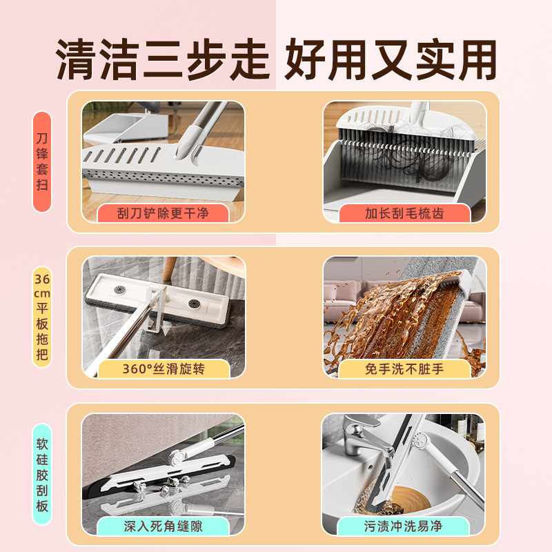 扫把拖把四件套簸箕套装组合2026免手洗平板家用一拖净刮水加长