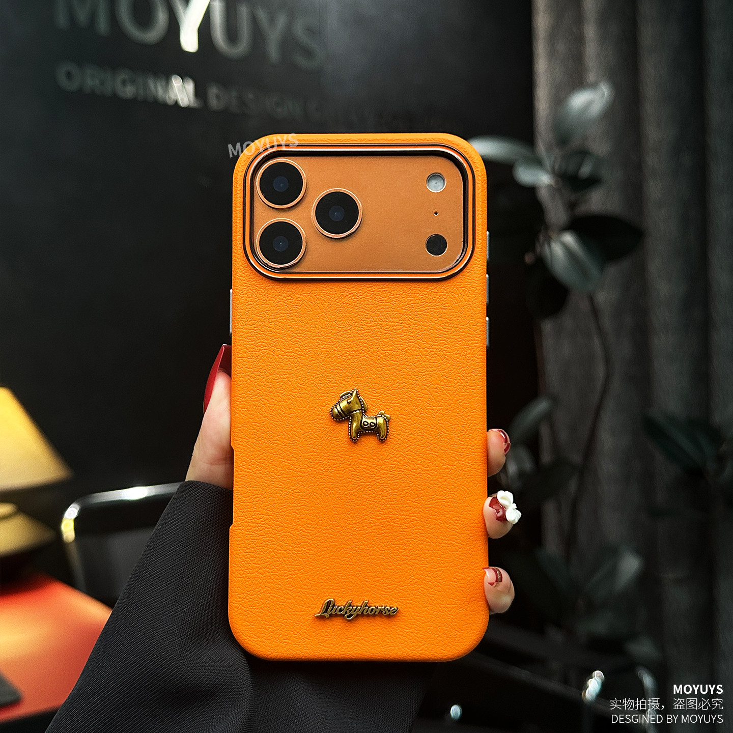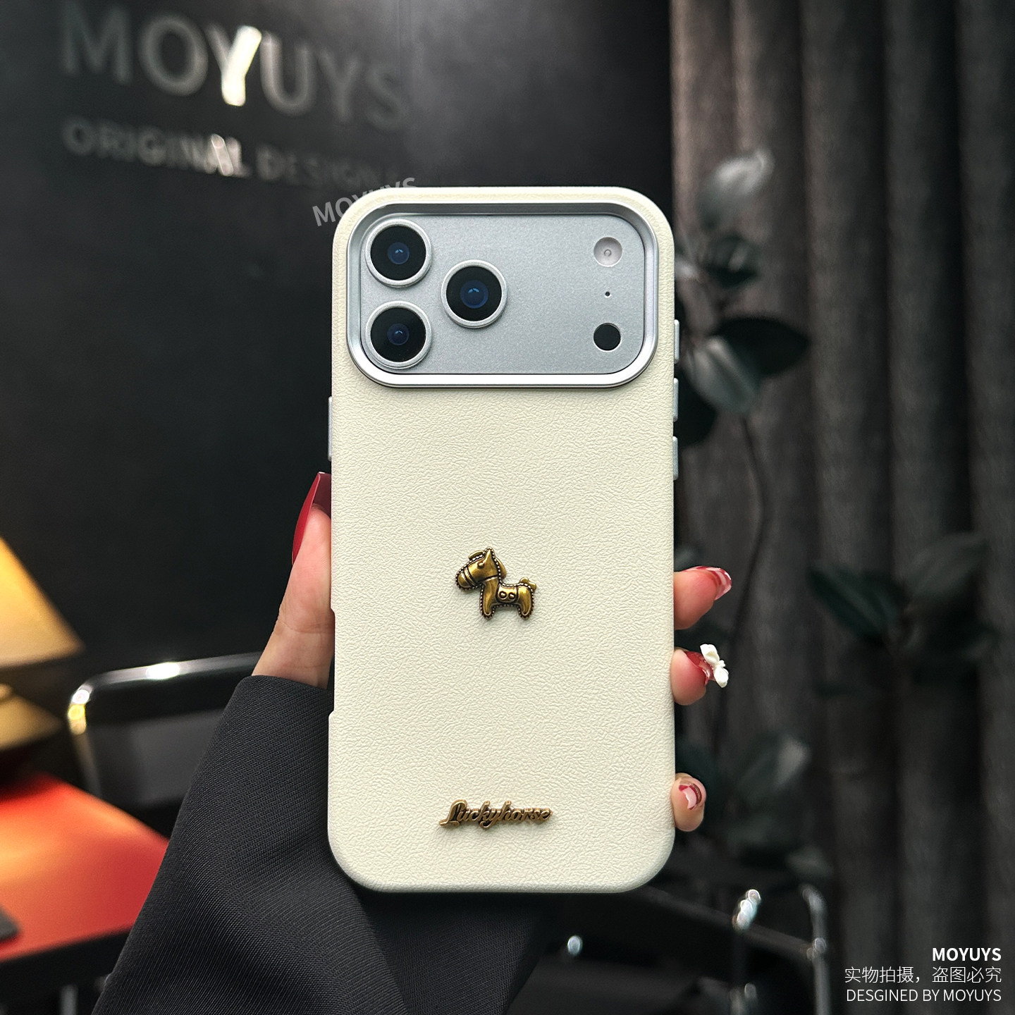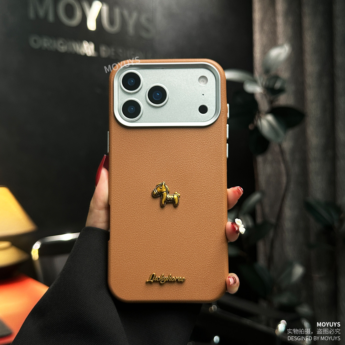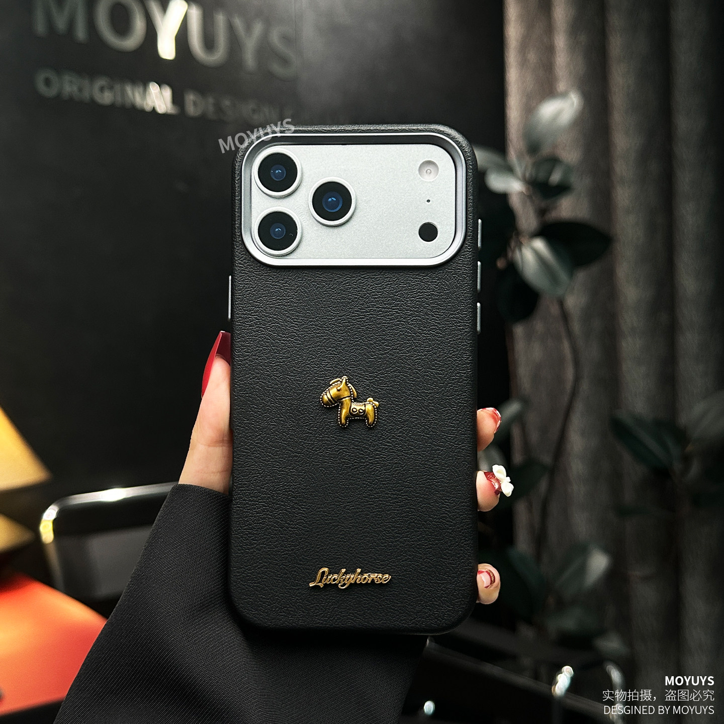 适用iPhone苹果17手机壳17pro金标小马新年款17promax素皮16promax红色高级感15防摔14/13超火时尚爆款promax