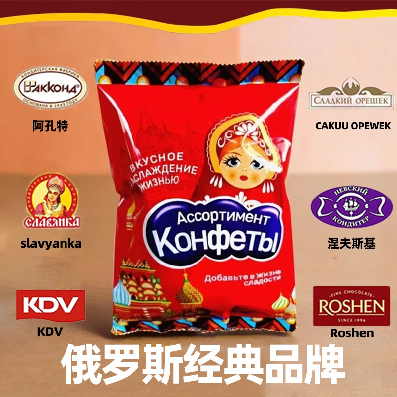 俄罗斯进口巧克力糖果混合装紫皮糖年货送礼喜糖散装休闲零食品