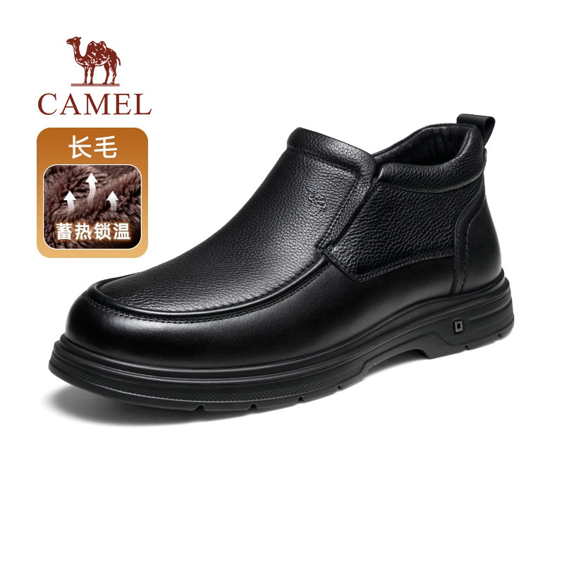 骆驼2025冬季牛皮缓震防滑爸爸舒适加绒保暖经典休闲商务皮鞋男士