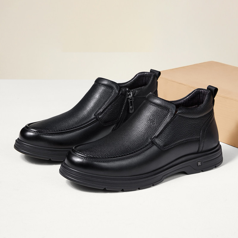 老人头皮鞋男真皮冬季中老年爸爸鞋大码男鞋加绒厚底商务休闲皮鞋