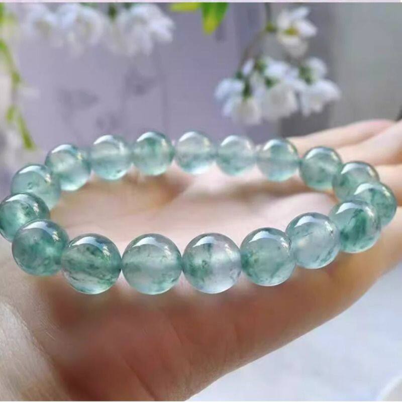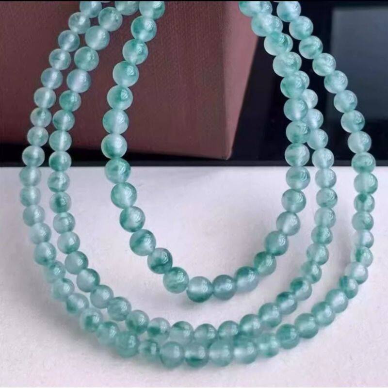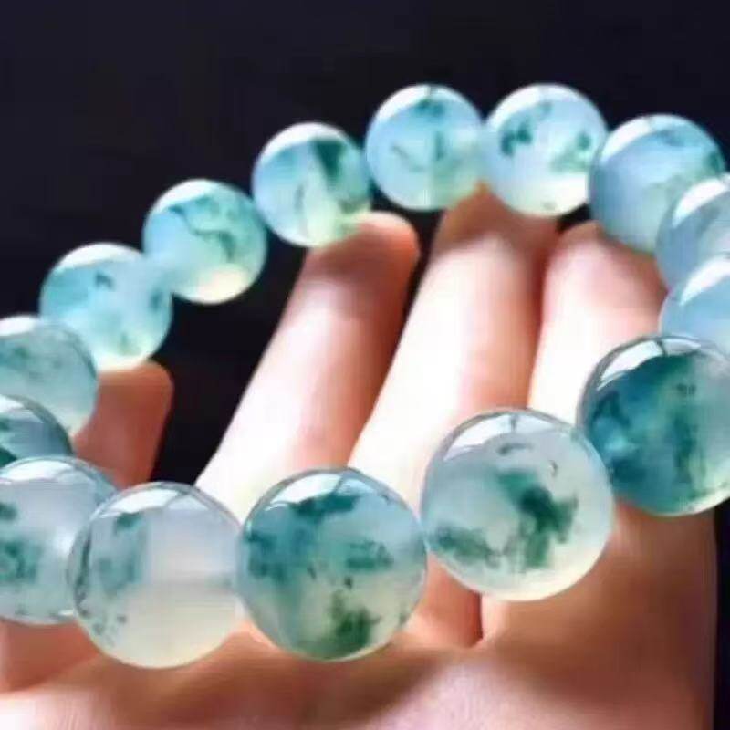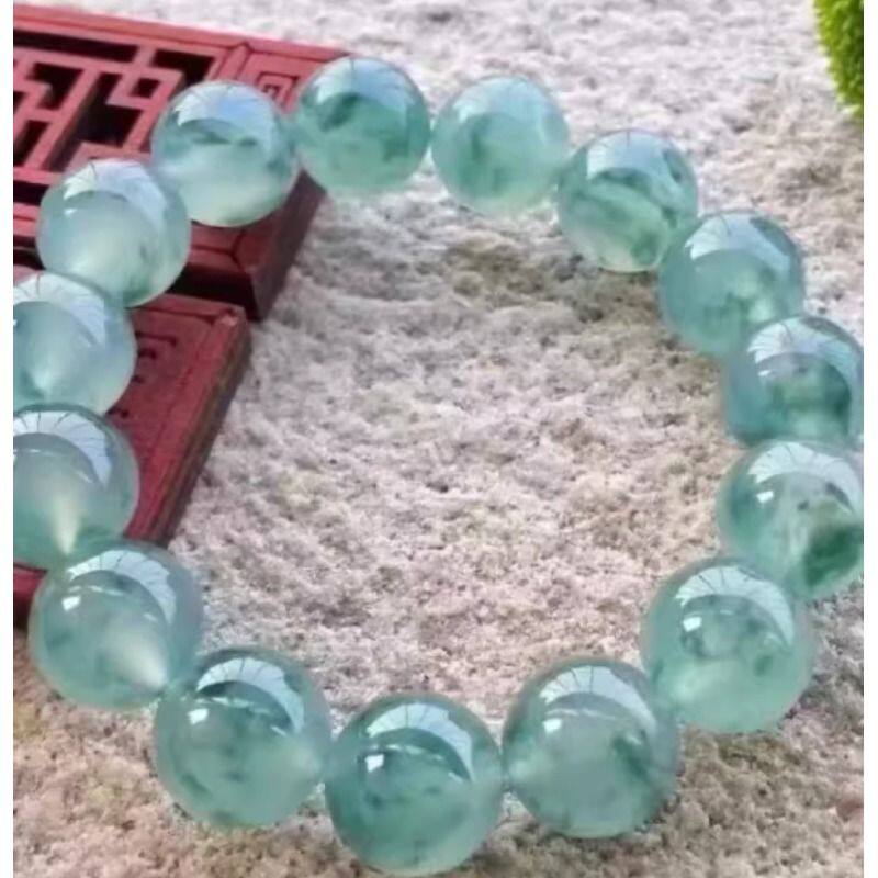 高冰种翡翠底仿老坑翡翠色手链飘花蓝水手串蓝水佛珠送女友礼物