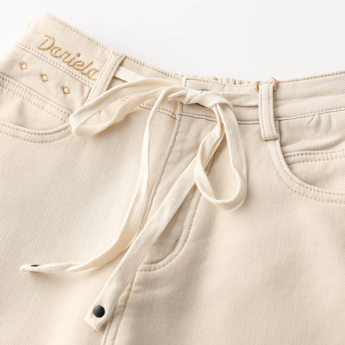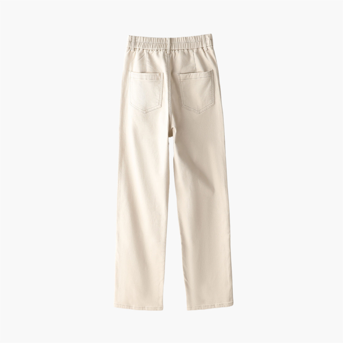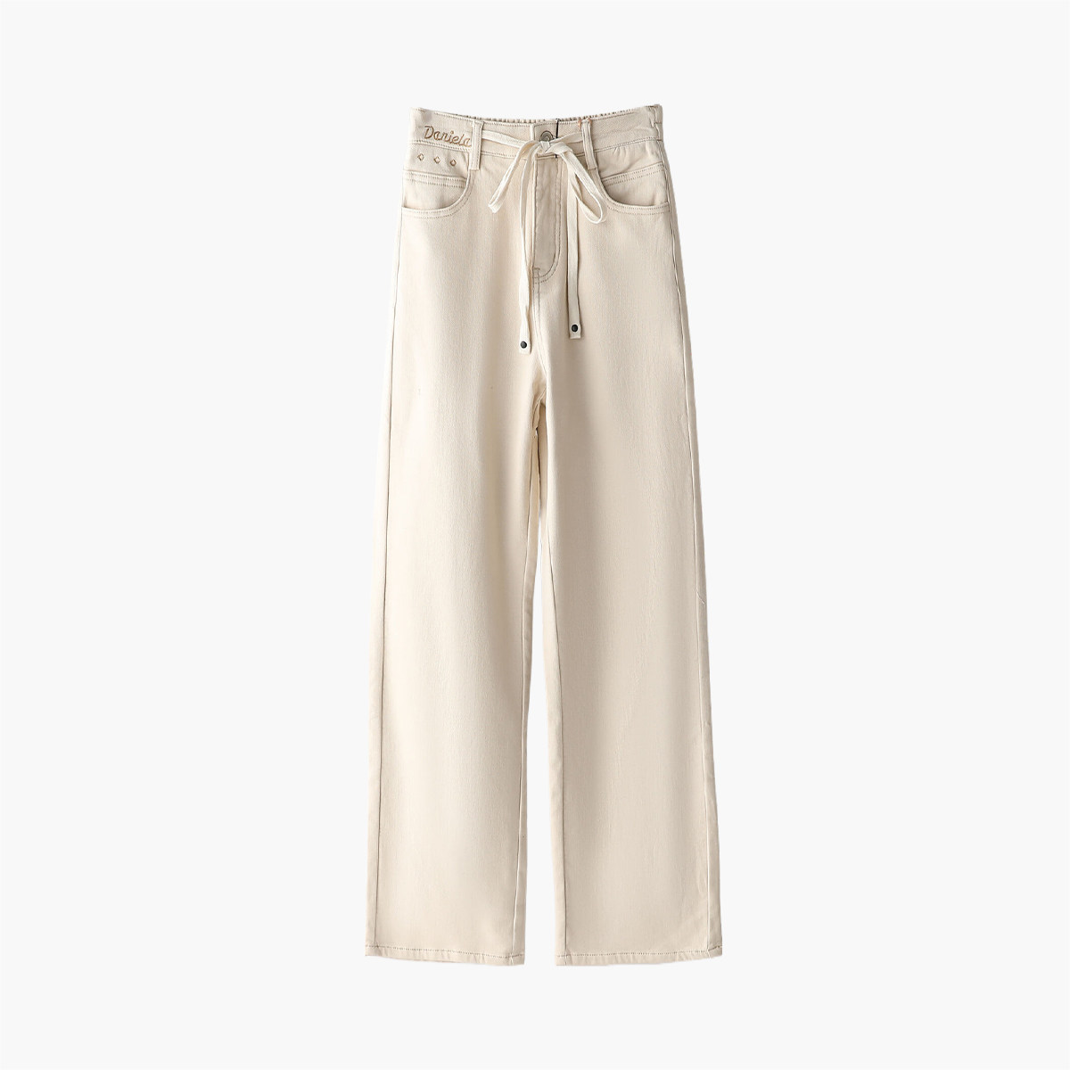 SMEN诗萌极简风高腰显瘦直筒牛仔裤女米白色阔腿裤小个子垂感长裤