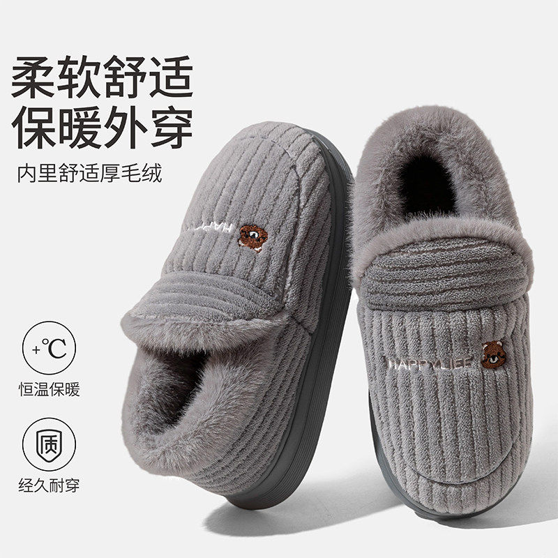 2026新款翻半包跟棉拖加绒保暖情侣外穿毛毛绒厚底防滑居家棉拖鞋