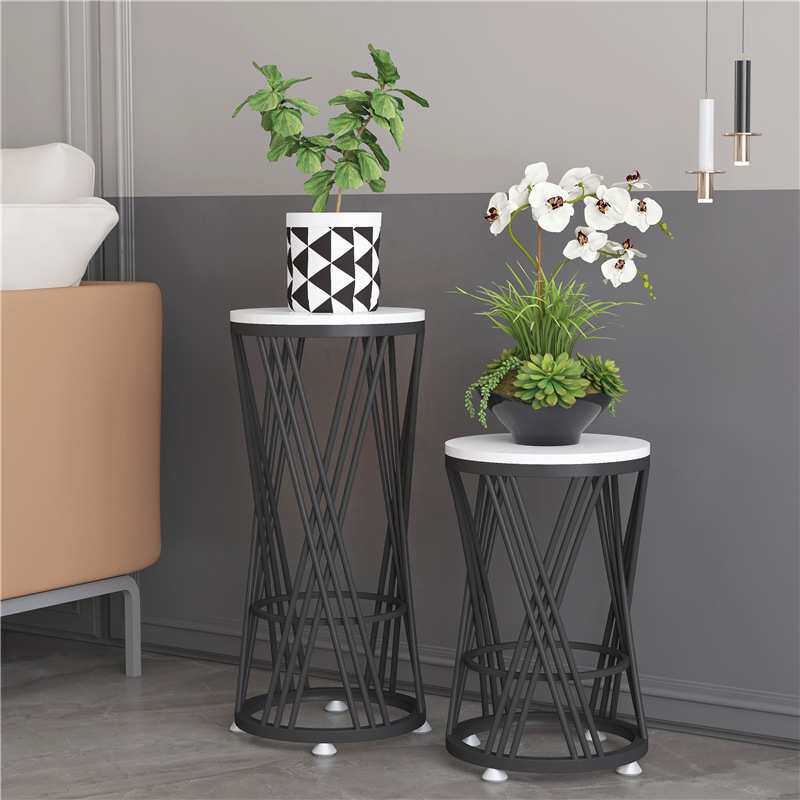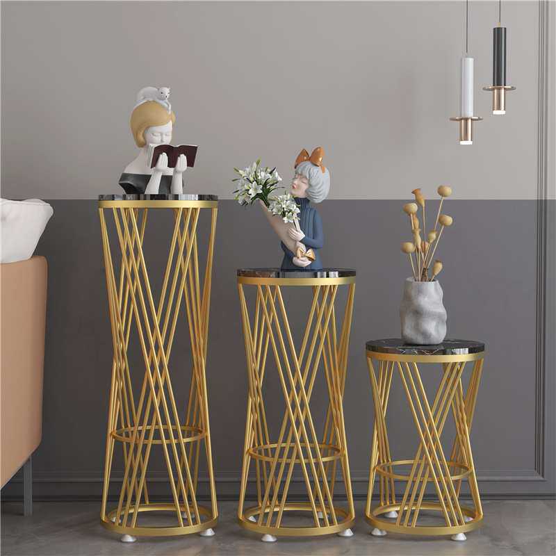 北欧铁艺室内花架轻奢大理石摆件客厅落地式置物架简约花架子
