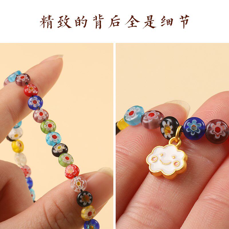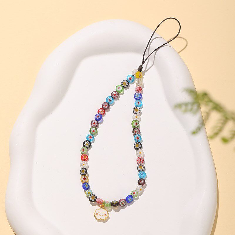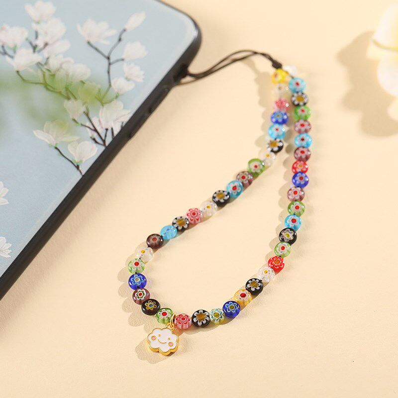彩色千花琉璃时尚手机链挂绳手腕防丢短款串珠壳挂件挂饰品防丢绳