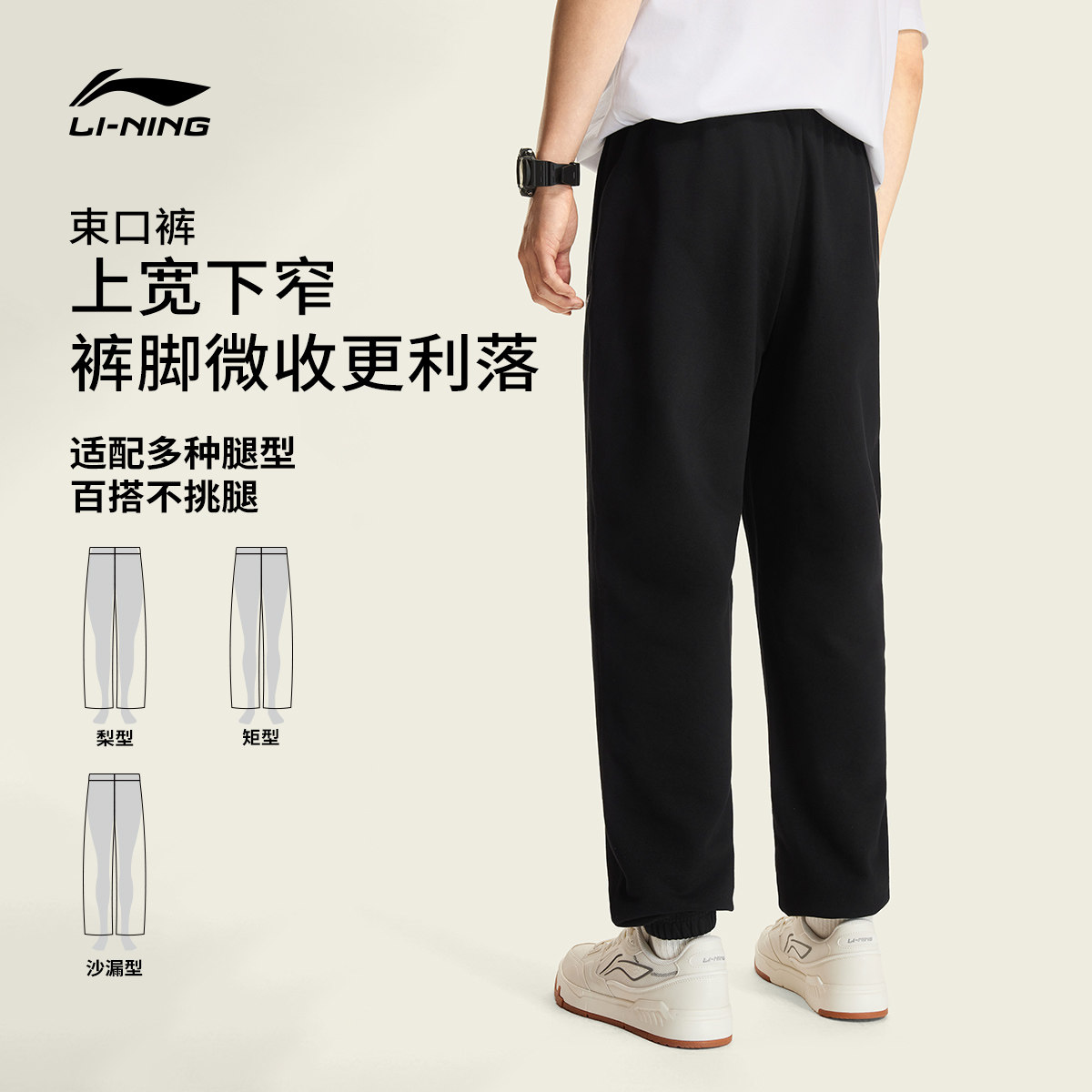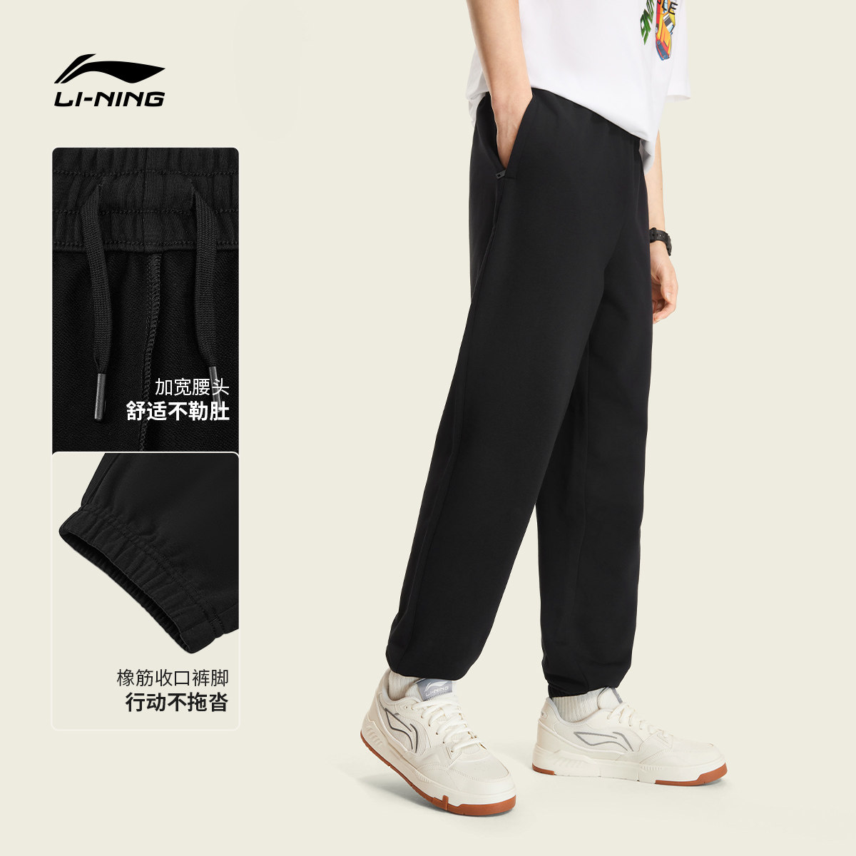 李宁卫裤灰色裤子春夏男士休闲跑步裤宽松透气针织长裤运动裤男