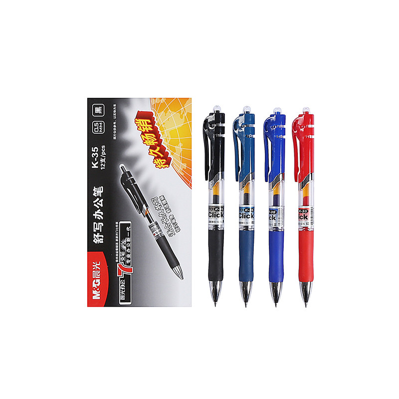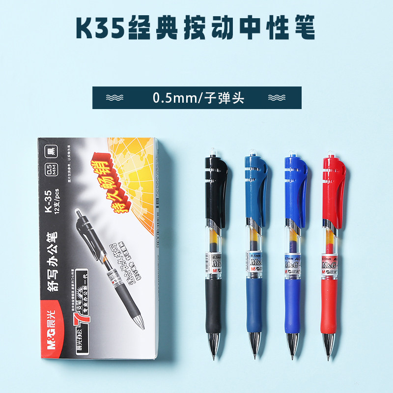 晨光K35按动中性笔红黑蓝水笔0.5签字笔学生考试办公用子弹头笔