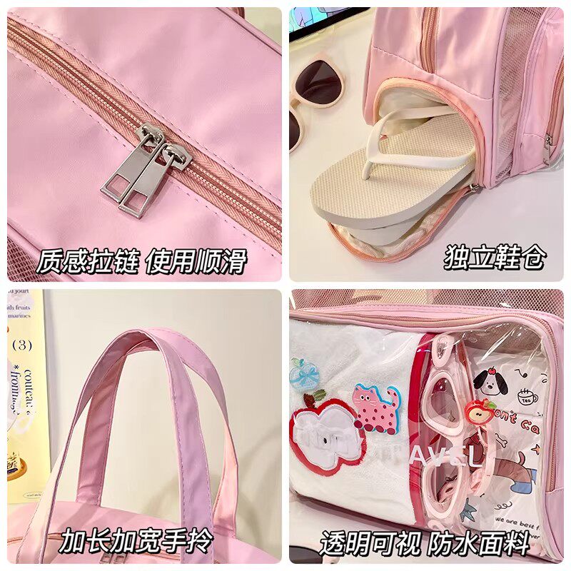 日本干湿分离游泳包大容量女透明防水手提小包旅行便携洗