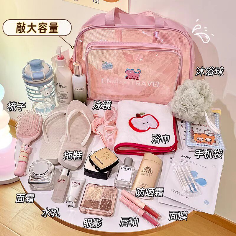 便携洗漱包旅行游泳化妆包手提出差防水网眼洗澡健身沙滩包收纳袋