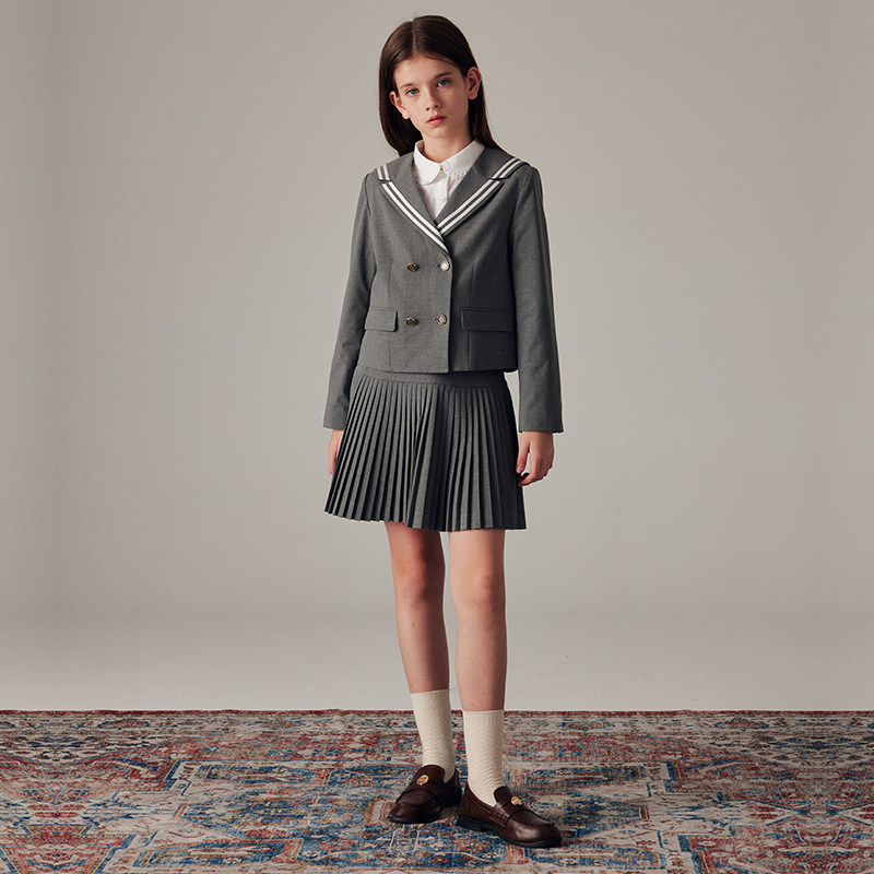学院风徽章刺绣,立体百褶裙摆