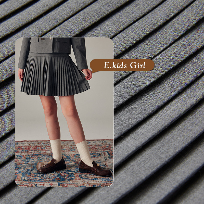 eland kids衣恋童装女童半身裙春秋复古学院风短裙刺绣百褶裙子