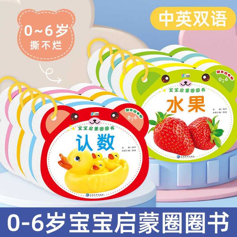 宝宝启蒙圈圈书 婴幼儿早教启蒙认知卡片撕不烂看图说话识物卡片幼儿园小班中班早教卡片儿歌童谣水果蔬菜0-6岁宝宝识物书亲子互动