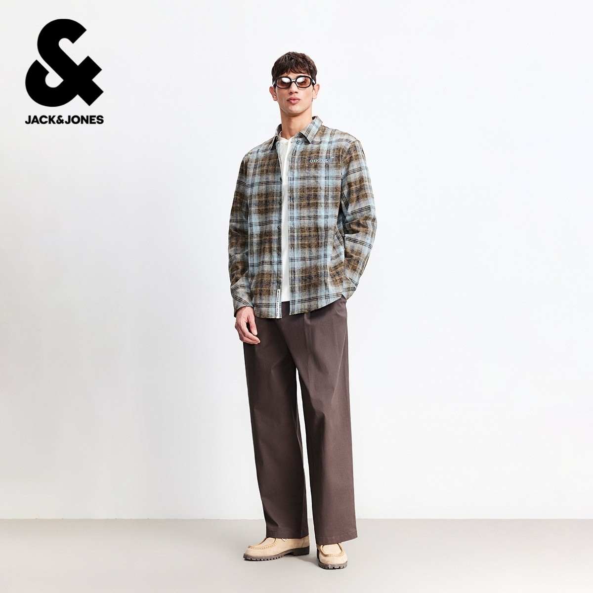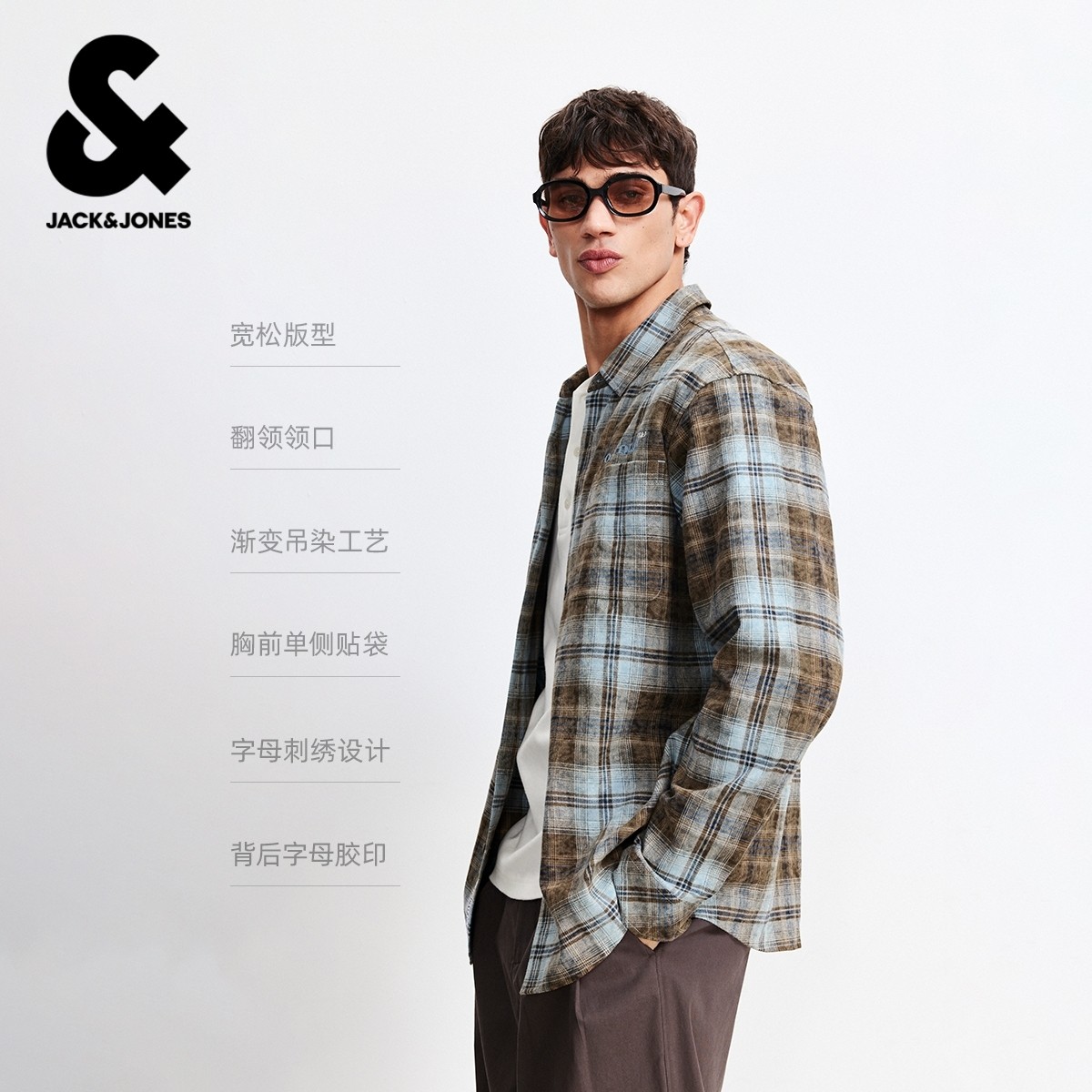 杰克琼斯衬衫男款2026年春季衬衣宽松纯棉渐变复古格子上衣男装
